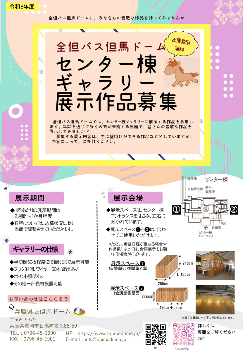 但馬ドームでは、センター棟ギャラリーに展示する作品を募集します。