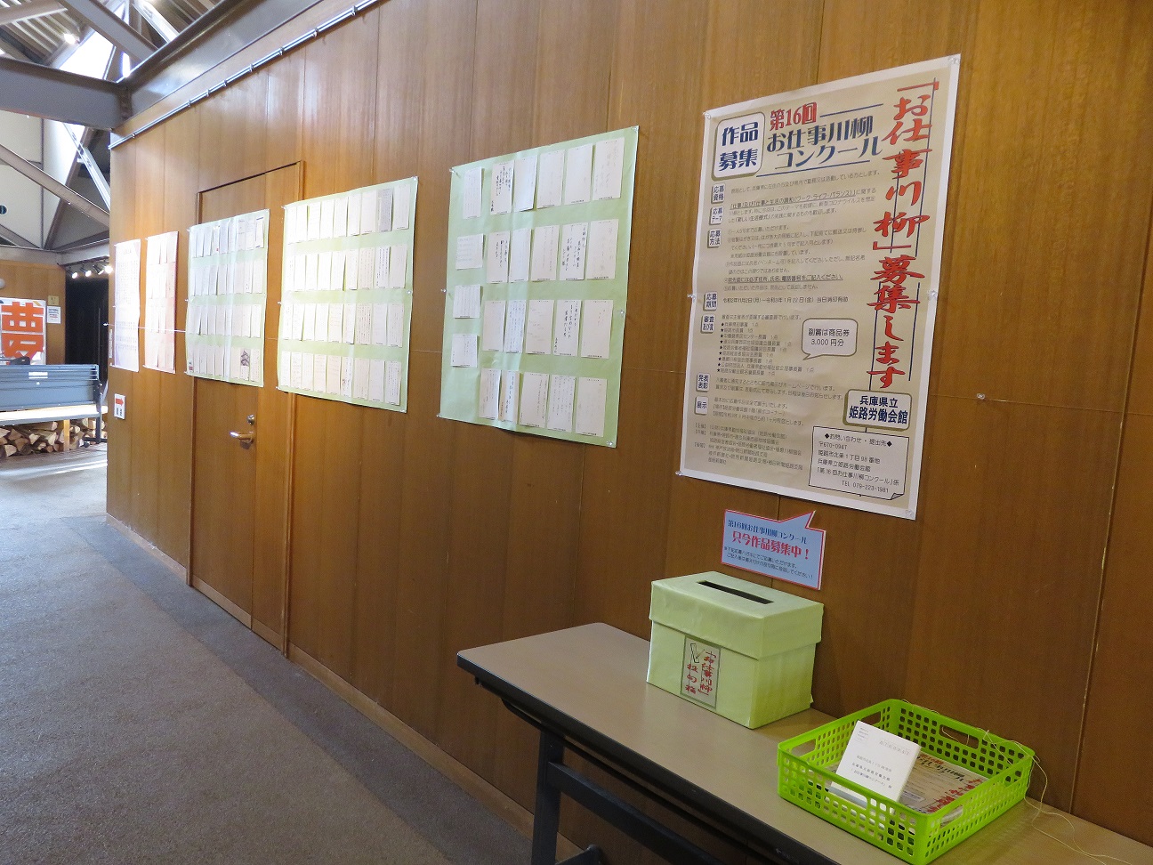 また、「第16回お仕事川柳コンクール」の作品も現在募集中です。ギャラリーに設置している投句箱に入れていただくか、兵庫県立姫路労働会館まで郵送または持参にてご応募ください。観覧無料。