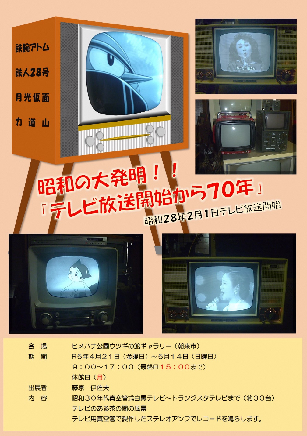 これを記念して、昭和30年代に活躍した真空管式白黒テレビからトランジスタテレビまでの約30台を展示します。