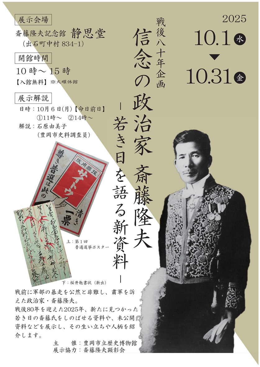 展示会場 | 斎藤隆夫記念館 静思堂(豊岡市出石町中村834-1) |