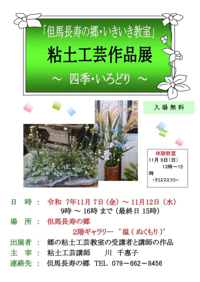 「但馬長寿の郷 粘土工芸教室作品展」を開催します。