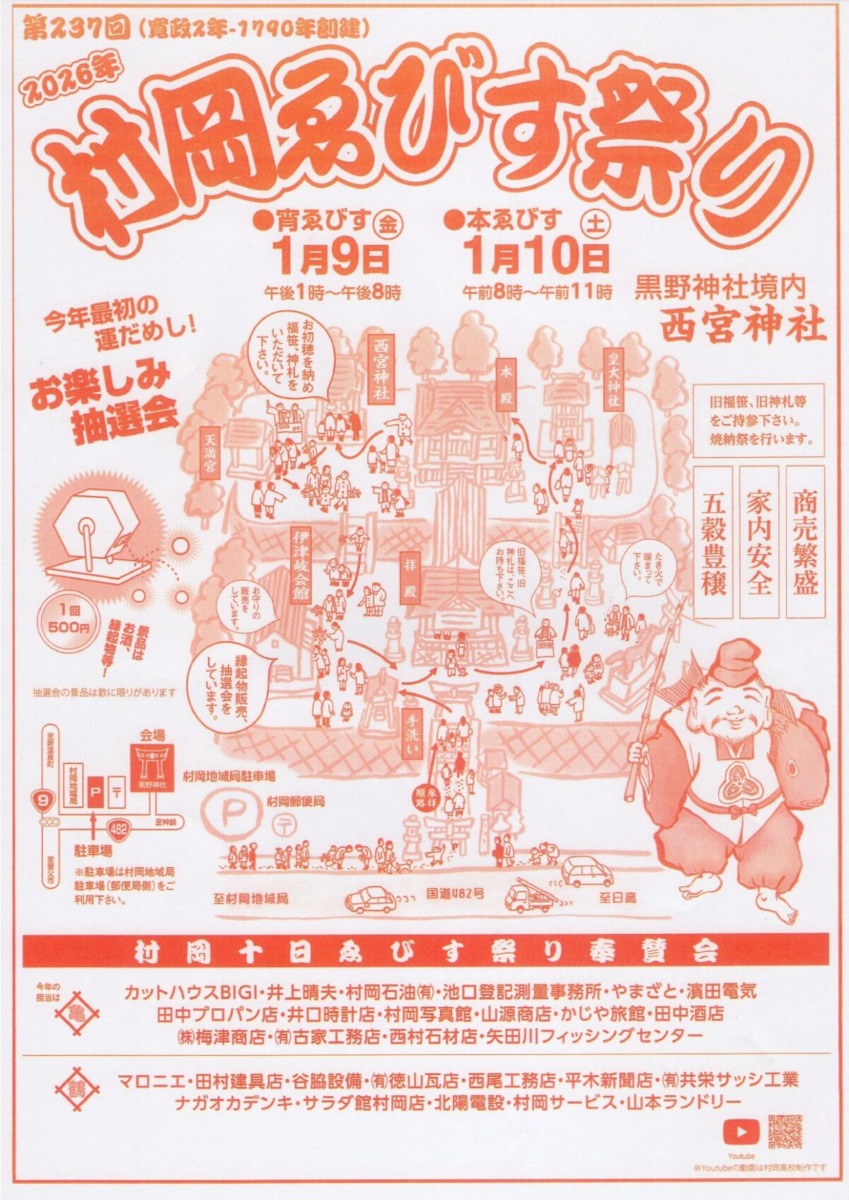 | 日時 | 【宵ゑびす】 2026年1月9日(金) 13:00~20:00 【本ゑびす】 2026年1月10日(土) 8:00~11:00 |