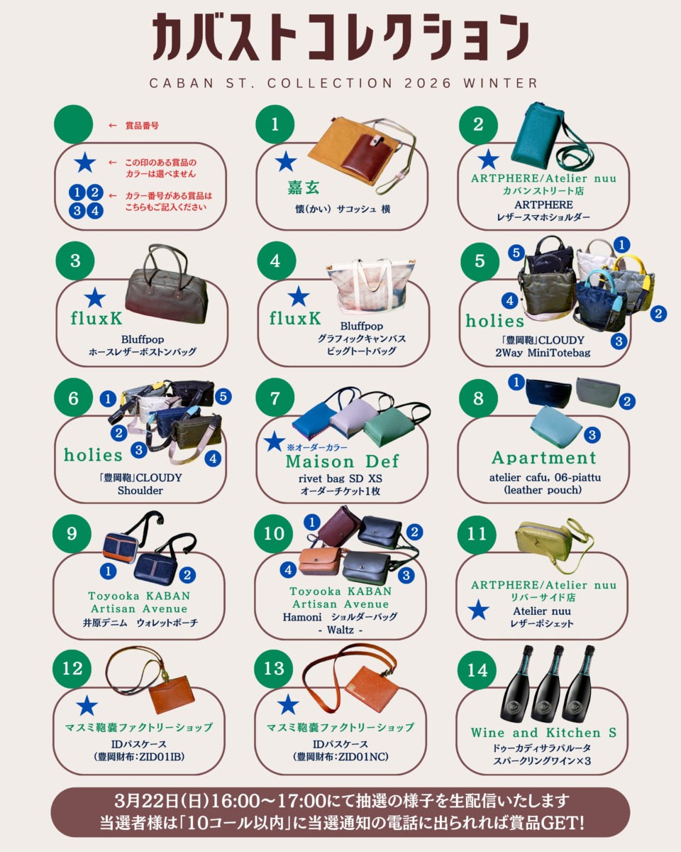 今回は、抽選でカバンや素敵な賞品をプレゼント!