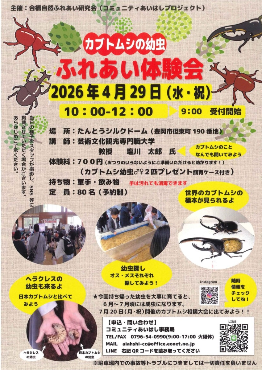 参加料 700円(カブトムシの幼虫オス・メス2匹プレゼント※ケース付き)