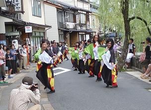 メイン会場は城崎中学校で19:00から開催されましたが、まずは16:00から北柳通りでパフォーマンス。 その様子です。