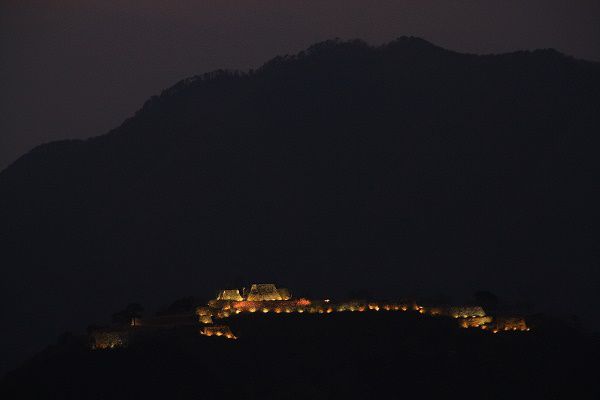ライトアップされた城跡と城下町竹田の夜景。ロマンチック感たっぷり!カップルはラブラブ!私は一人ぼっち!