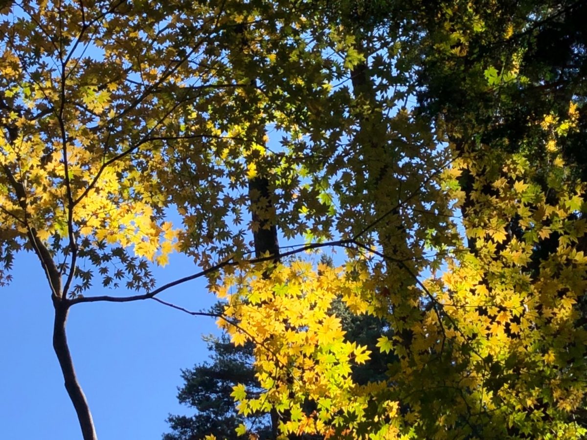 この山は常緑樹が多く、所々に紅葉したもみじがありました。