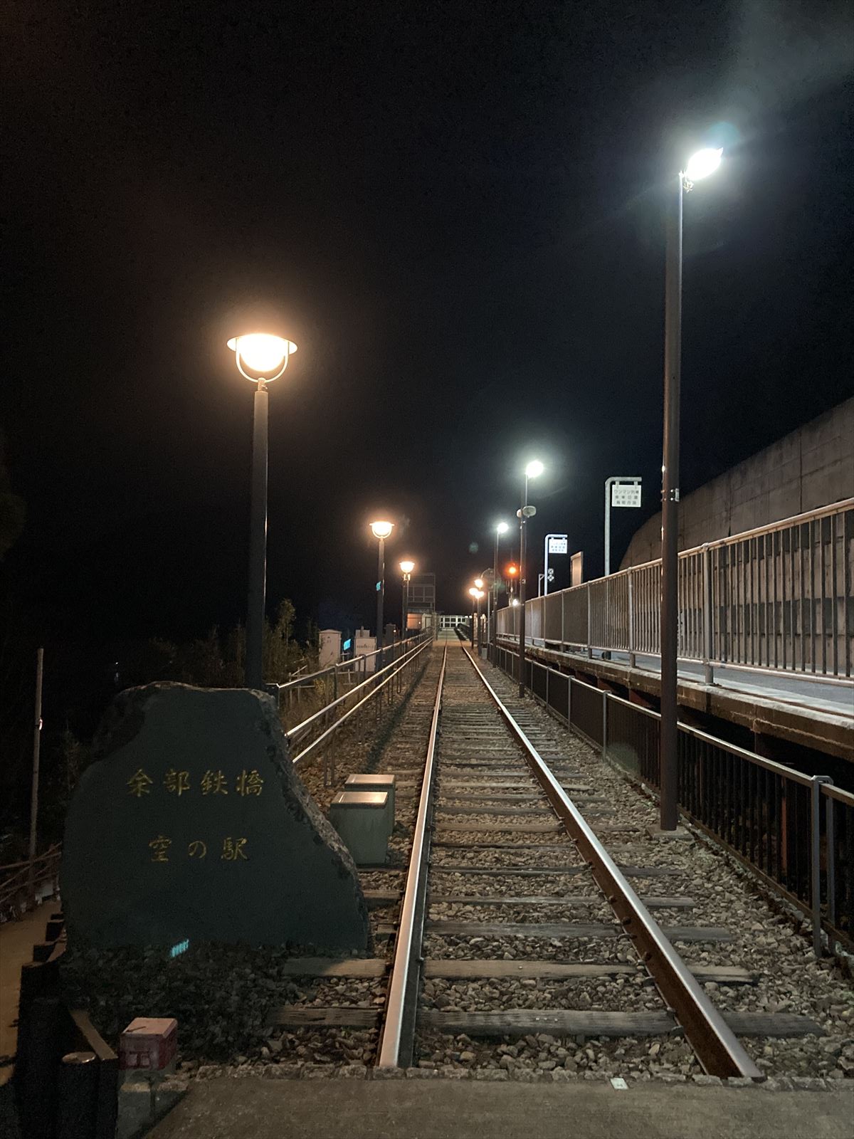暗くてわかりにくいですが、月明りと余部橋梁です。