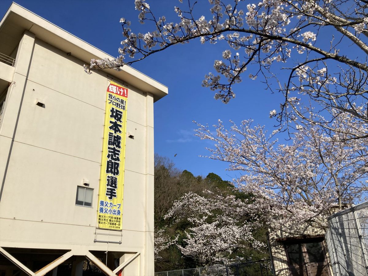 養父小学校出身の阪神の坂本選手の垂れ幕がありました。