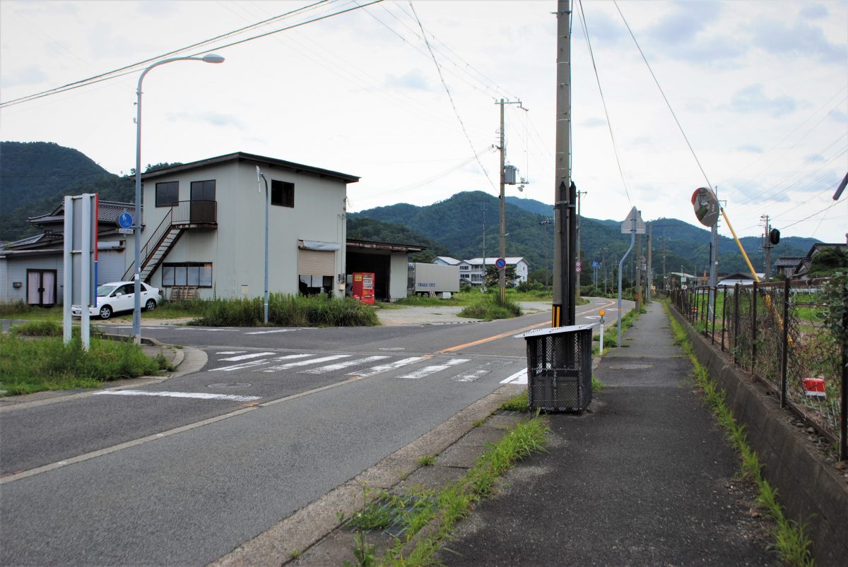 この左手に階段があり、階段上ると”元竹野南小学校”があります。この写真に写ってる階段ではありません。