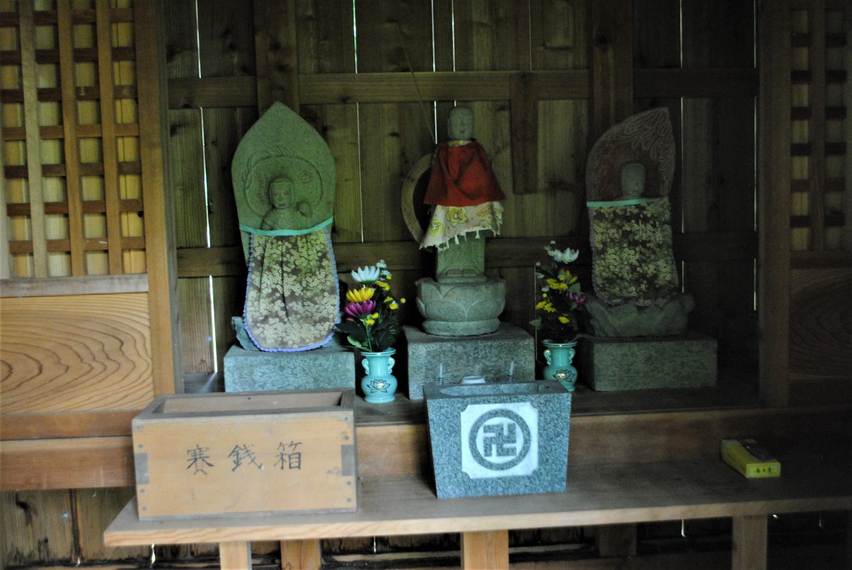 9:15。ちょっと迷ったけど着きました。十二薬師堂となりのかわいい祠が、但馬六十六地蔵霊場第十二番です。