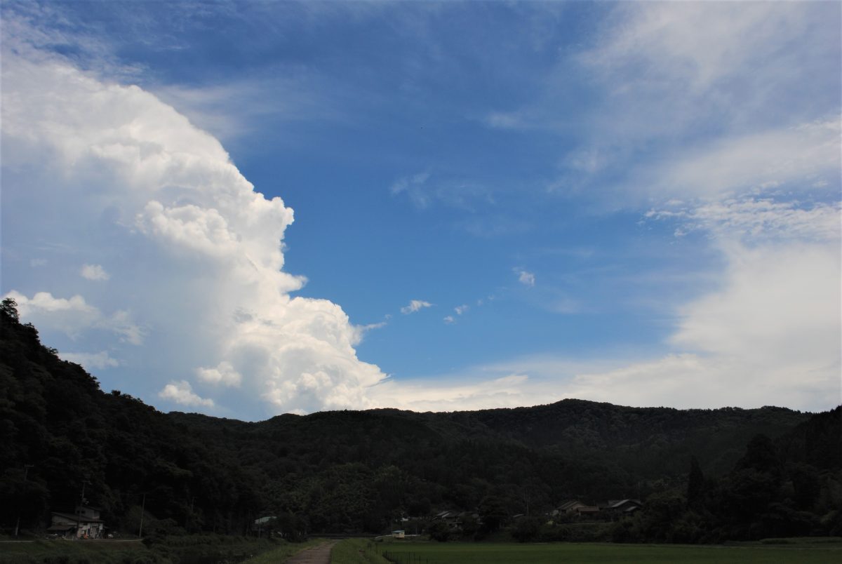 「ついにカミナリ?! ポツポツきたよ。」12:06 なんとか国道178まできて、”農産物販売所”に避難。逆にやっと座りにくいコンクリに座ってリュックをおろして休憩できました。