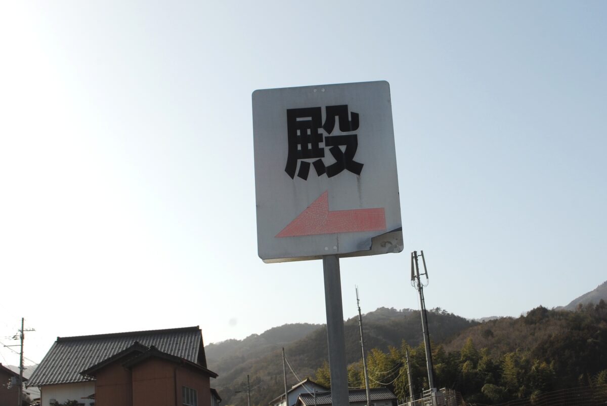 看板発見。看板のところを左に曲がって、一つ目三叉路をを今度は右に。不動山の登り口手前に、