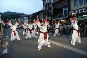 応援出演も含み48組が鳴子を打ち鳴らし、温泉街一帯を舞台に