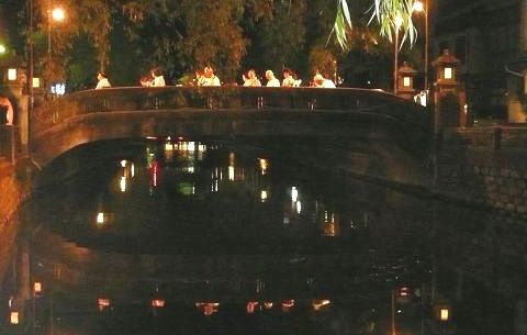 大谿川に架かった橋の上では、城崎の四季を表現した情緒豊かな「城崎小唄」も復活させ、三味線、胡弓、尺八で再現した旋律は何か物悲しく感じます。