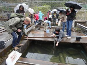 そしていよいよ保護プールで60㎝~130㎝のオオサンショウウオ達とご対面です!