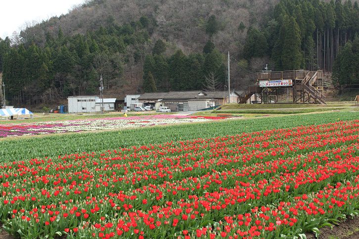 毎年人気の但東チューリップまつりは12日から24日の間、但東町畑山で開催されます。今年のフラワーアートの