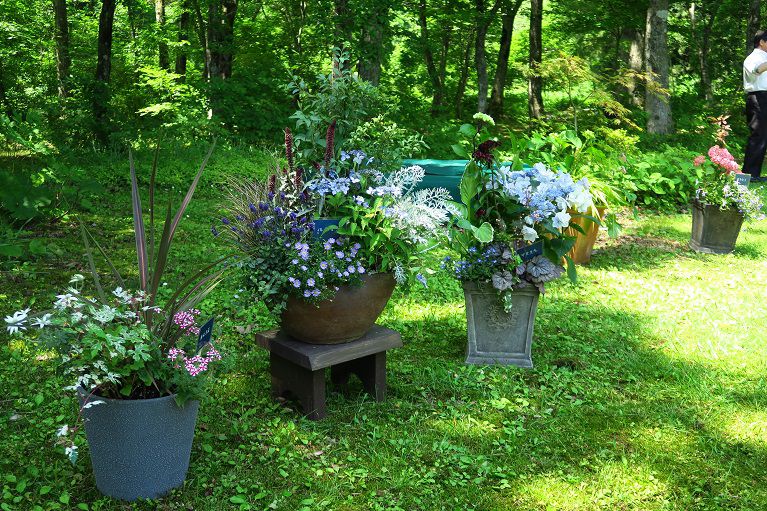 県内外から出展された100点を超える寄せ植え。コンテストがはじまります。