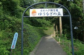 遊歩道を散策中こんな看板見ました。右側は宿舎横のポイント案内アーチです。