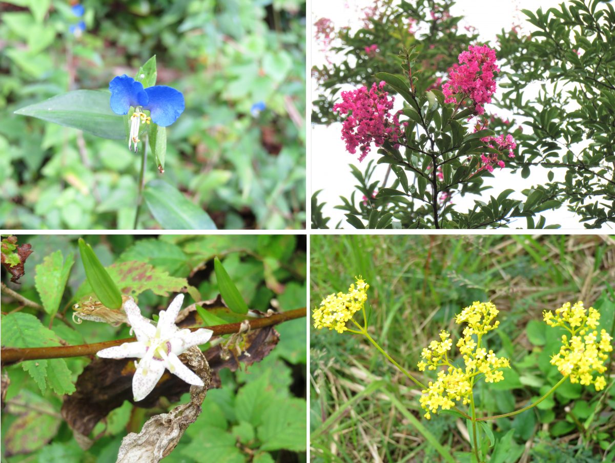 道端のそこかしこに、派手さはありませんがよく見ると綺麗な花が咲いています。紫色の小さな釣り鐘のような花、萩など様々。