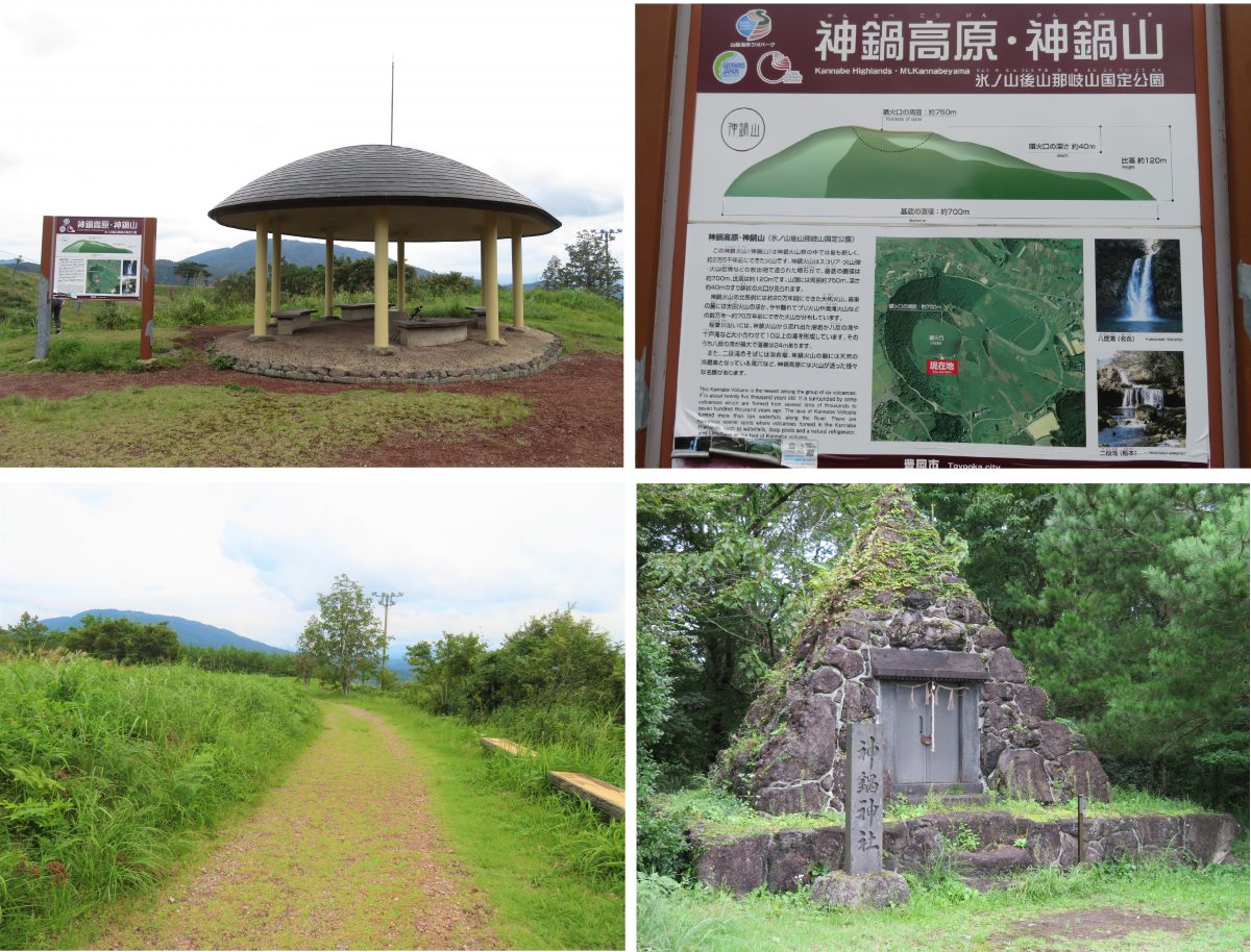 噴火口の周囲も約750mの遊歩道が整備されています。またその一角には噴石で形作られた神鍋神社が鎮座しています。