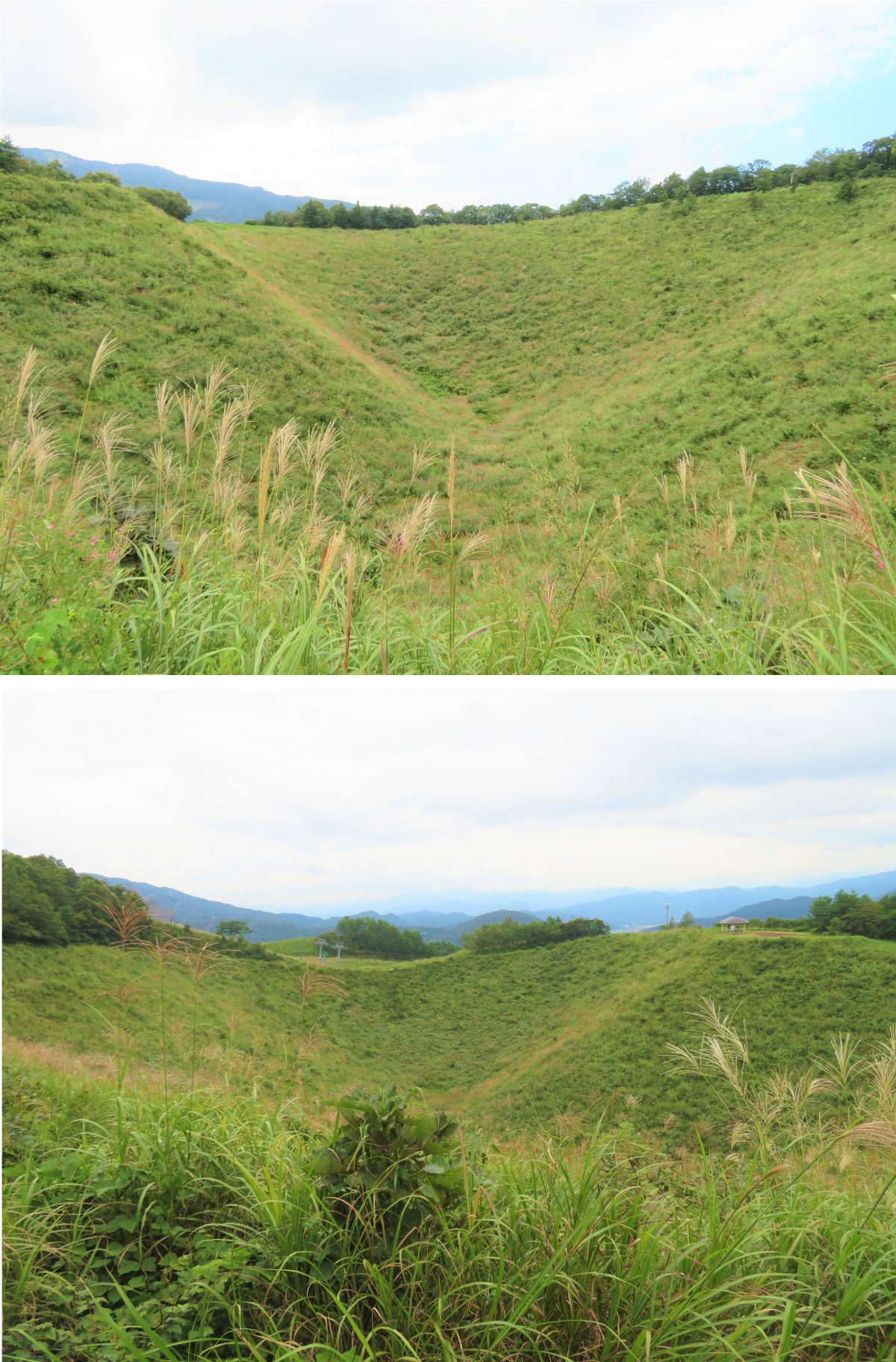 深さ約40m、すり鉢状の噴火口です。降りられないこともないのでしょうが、ちゃんとした道がなく、上がってくるのも大変そうなのでやめときます。