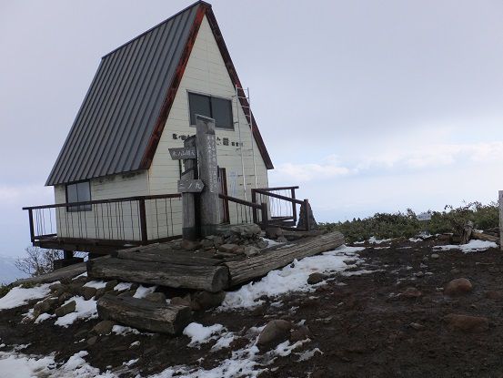 山頂に着きましたが風が強くなってきたので小屋に入ります