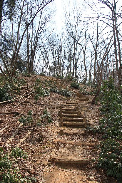 西入口方面に下山しました。 下りを振り返ってみました。 結構きつい坂。