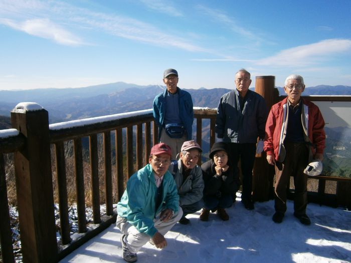せっかくここまで来たので、紅葉を満喫しようと妙見名草神社からオプションで、蘇武岳の東屋に回るコースを取りました。せきやん右肩の辺り、左の山に雪が見えるのが鉢伏山です。その左が県下最高峰の氷ノ山です。