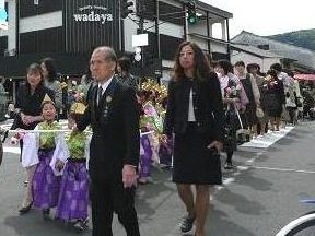 今日、24日は温泉寺ご詠歌隊を先頭に可愛い稚児行列、御輿に乗った道智上人お像、開山忌に参列のお寺さん方の行列があり、城崎温泉の7湯を巡りご祈祷されました。
