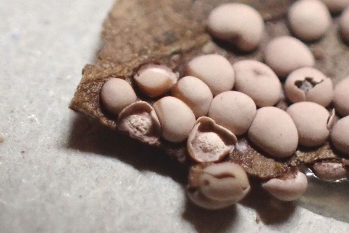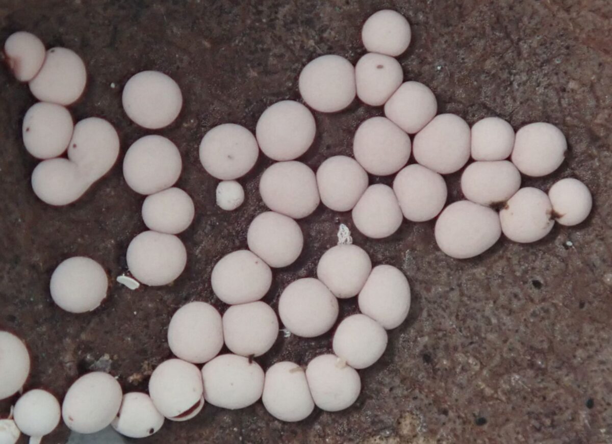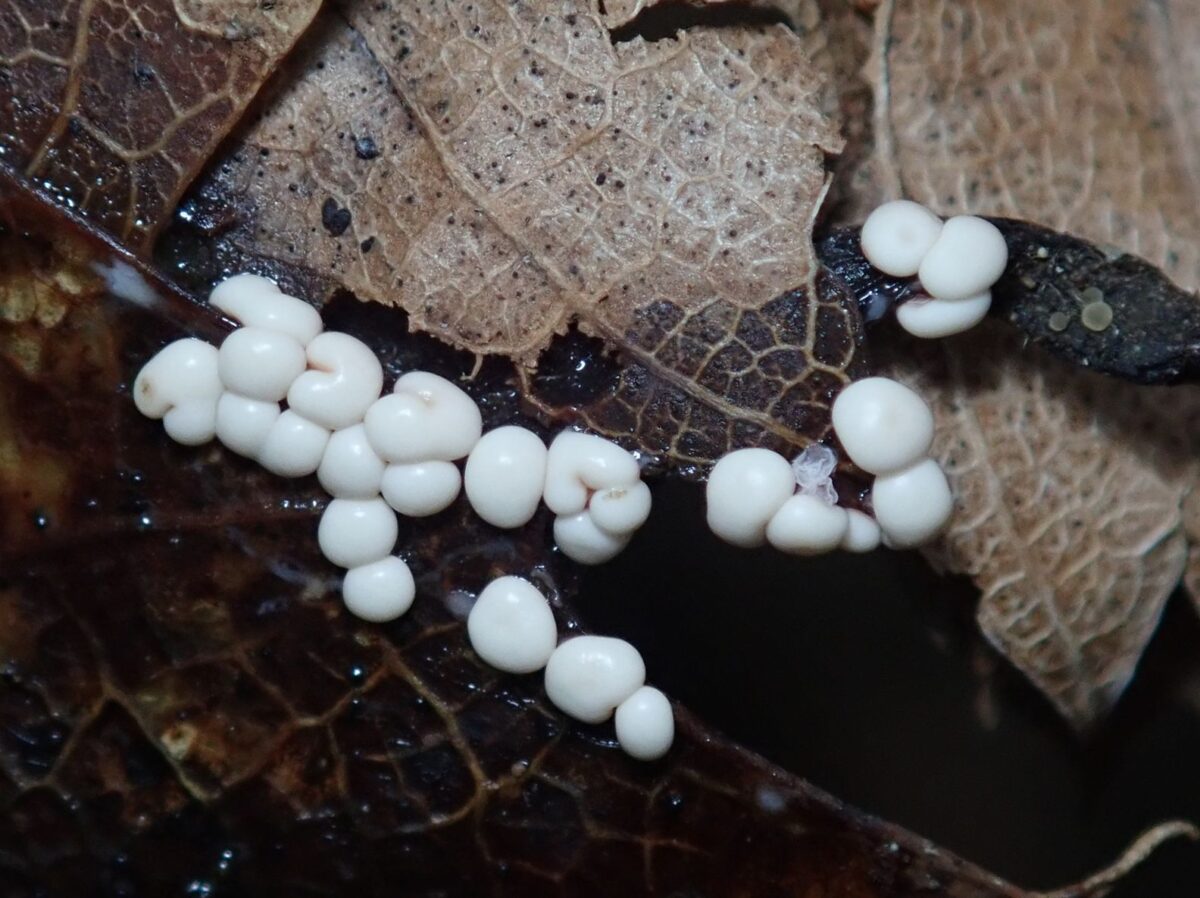 ちなみに、学名のtestaceumは、ラテン語で、「陶器のような」、「黄土色の」といった意味のようである。Testaceumは複数の生物の学名で使われている。私なら和名としてモモイロホネホコリと命名してしまうだろう。日本の文化を表す意味で和名としてはマンジュウホネホコリのセンスは素晴らしいと思う。