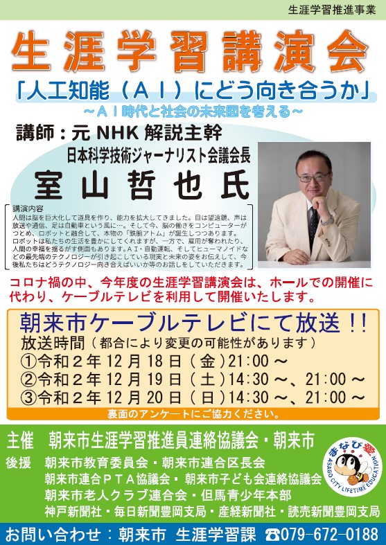 コロナ禍の中、今年度の生涯学習講演会は、ホールでの開催に代わり、ケーブルテレビを利用して開催いたします。