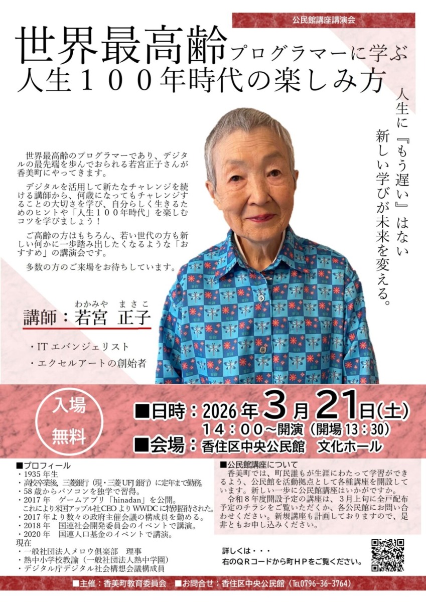 公民館講座講演会「若宮正子氏講演会」開催のお知らせ