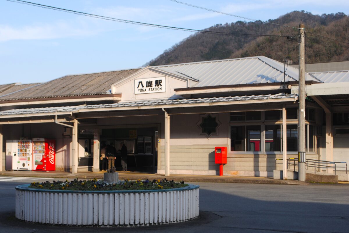 県道2まで戻って、左に曲がって、大屋橋を渡ります。信号を右に曲がって八鹿病院・八鹿駅の方へ。